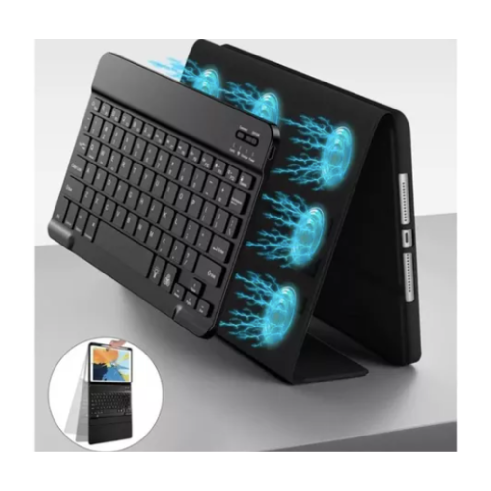 Teclado en Español con Letra «Ñ»: Este teclado cuenta con un diseño en español que incluye la letra «Ñ», lo que te permite escribir de manera natural y fluida en tu idioma preferido. Además, el teclado retroiluminado facilita la escritura en ambientes con poca luz. Un mecanismo de resorte debajo de cada tecla asegura una respuesta táctil con cada golpe, ayudándole a escribir más rápido y con menos errores que en una pantalla táctil.